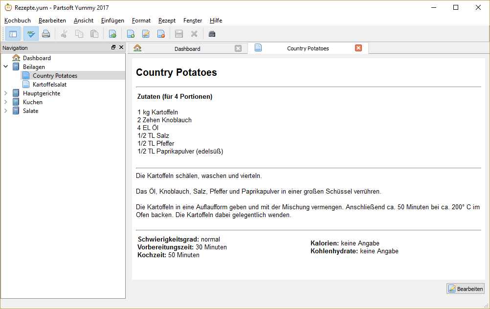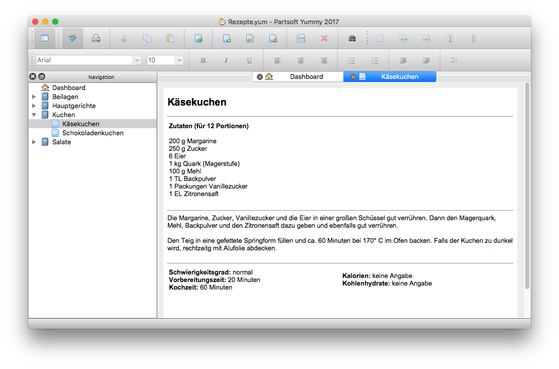 Do you still use cookbooks in printed form or do you have a loose card collection with your favorite recipes? With our recipe management Yummy 2017 you bring order to your collection. Recipes can be easily captured and quickly retrieved using the search function.